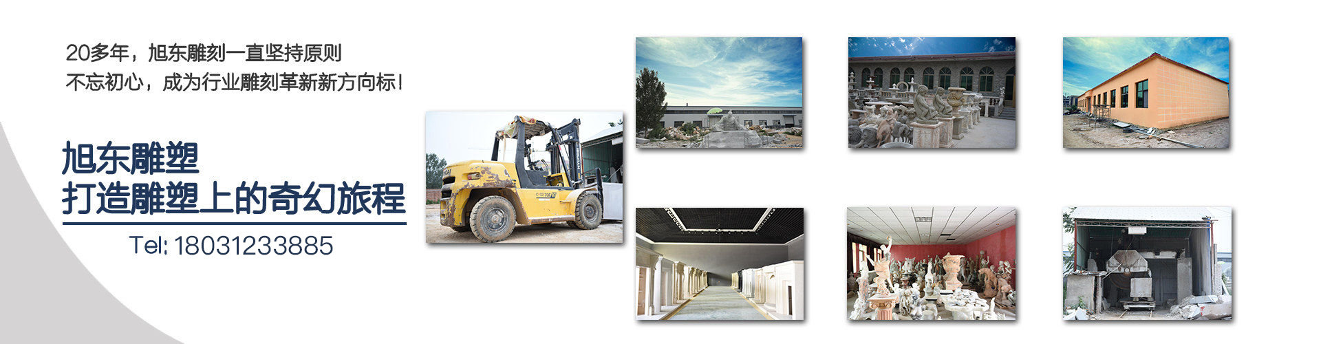 曲陽縣旭東雕刻有限公司制作出的作品時常流于國內各個省區甚至國外,贏得廣大客戶信賴,公司地址位于河北省保定市曲陽縣羊平鎮經濟開發區, 歡迎各界熱愛雕刻的人員前來欣賞和購買。 公司主要從事石木雕刻、石板、壁爐、工藝品、不銹鋼、銅、鐵雕刻品的生產和銷售。 現已形成紀念碑雕刻、建筑雕刻、園林雕刻、西方人物雕刻、壁爐雕刻、動物雕刻、傳統雕刻、裝飾雕刻、不銹鋼及金屬雕刻、 石材制品及石板等十大系列,二十六個門類上萬個品種。